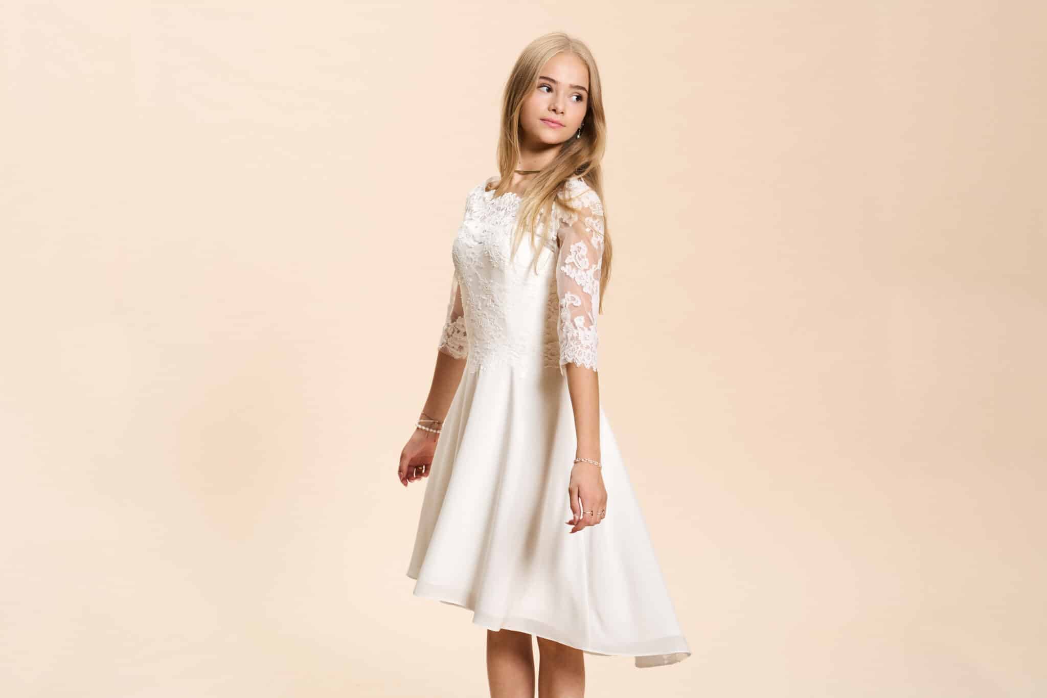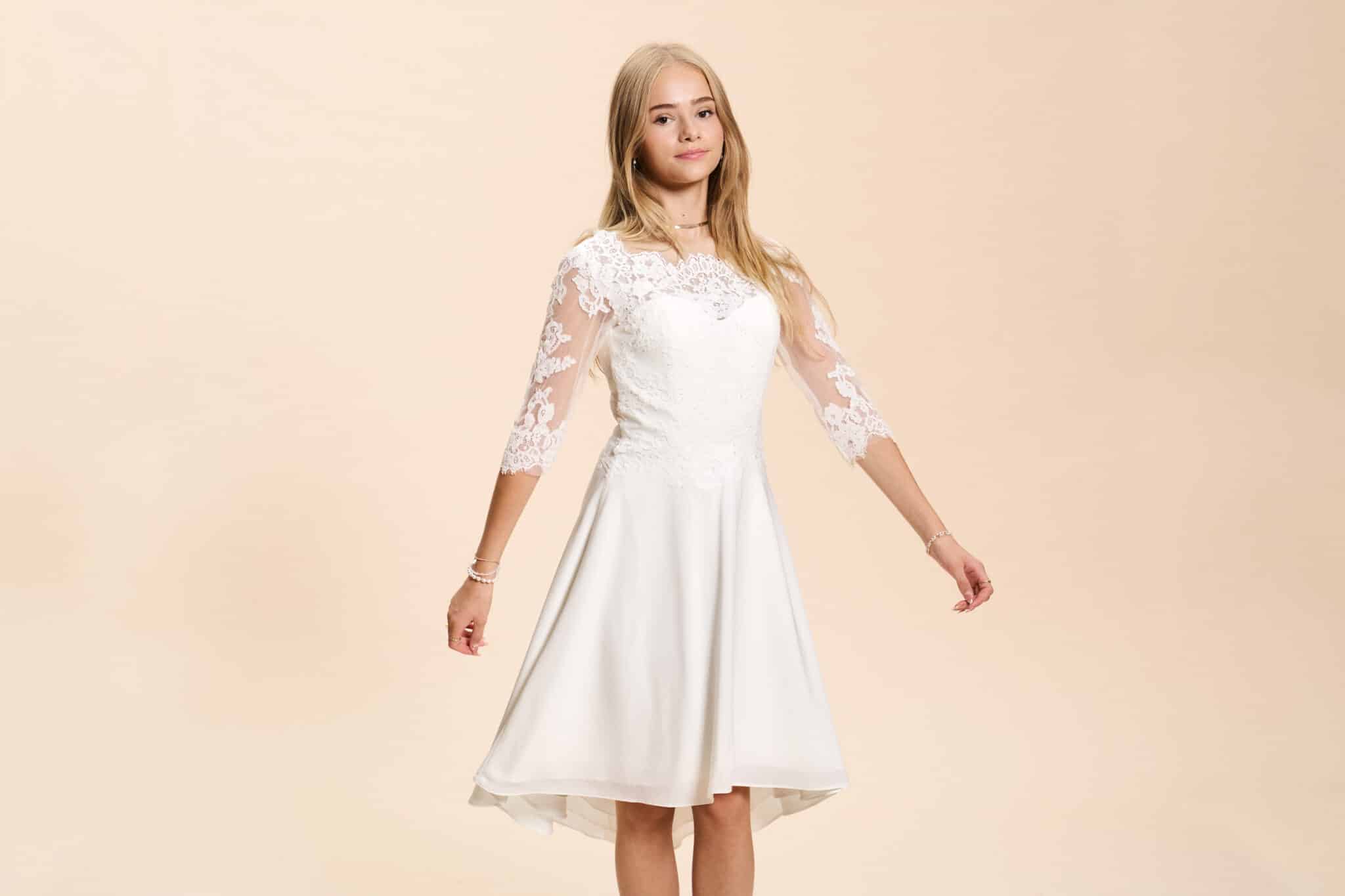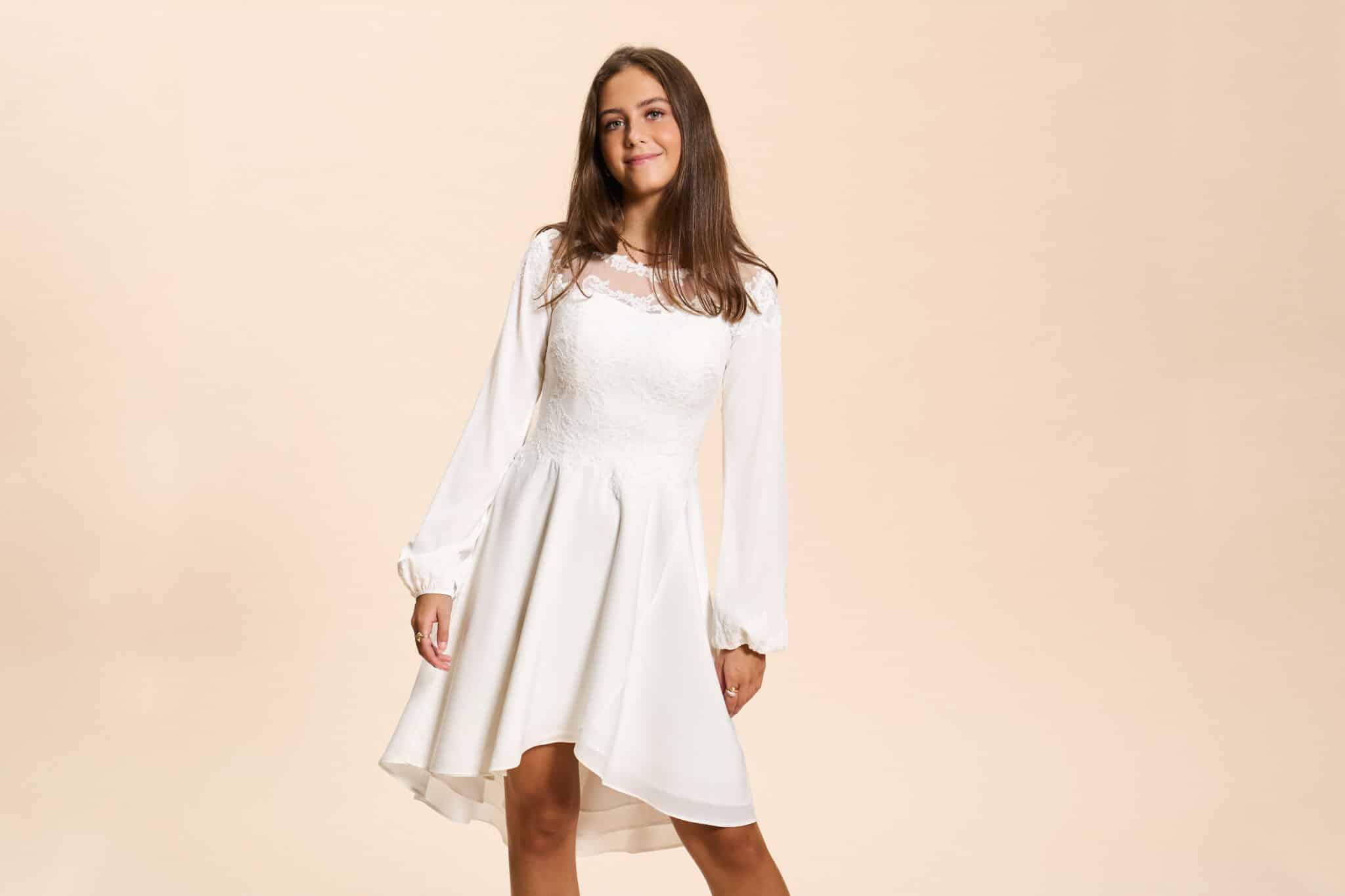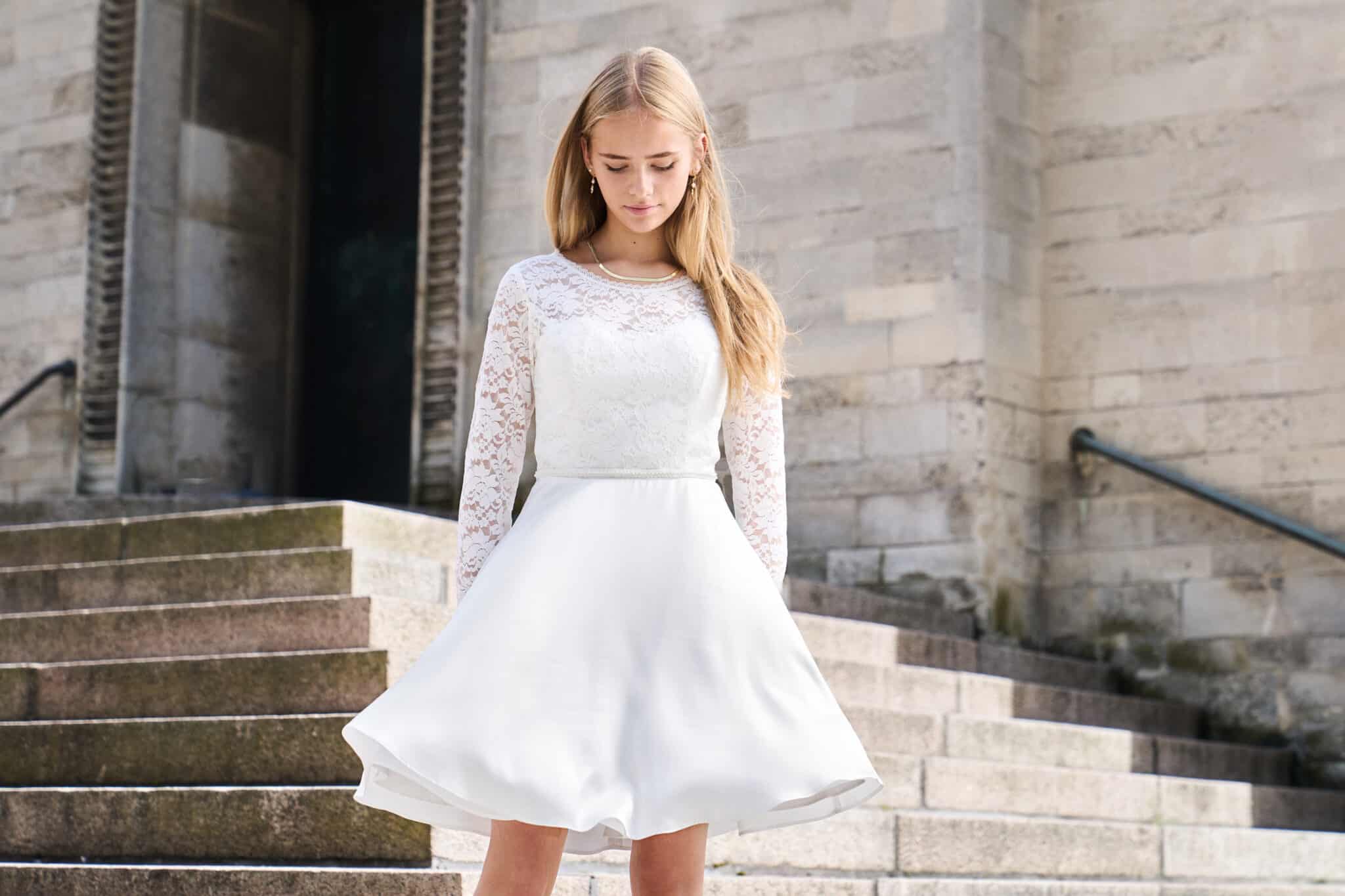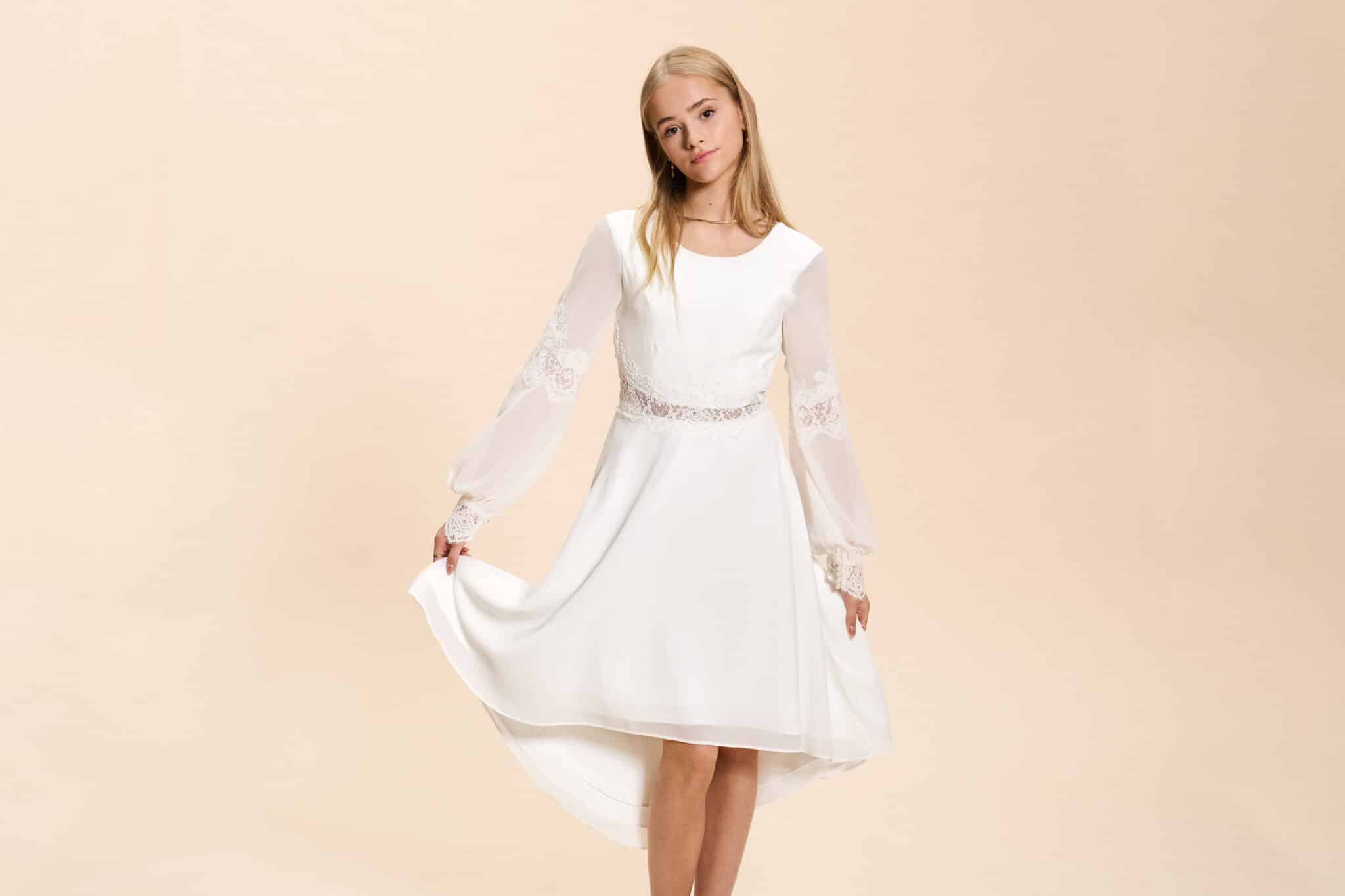 Vi tilbyder både konfirmationskjoler fra Real Silk, og skræddersyet konfirmationskjoler.