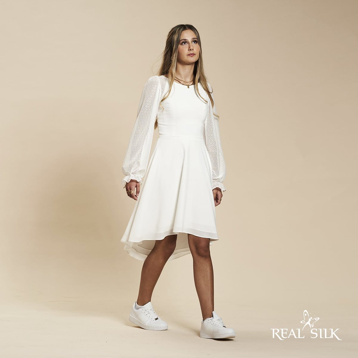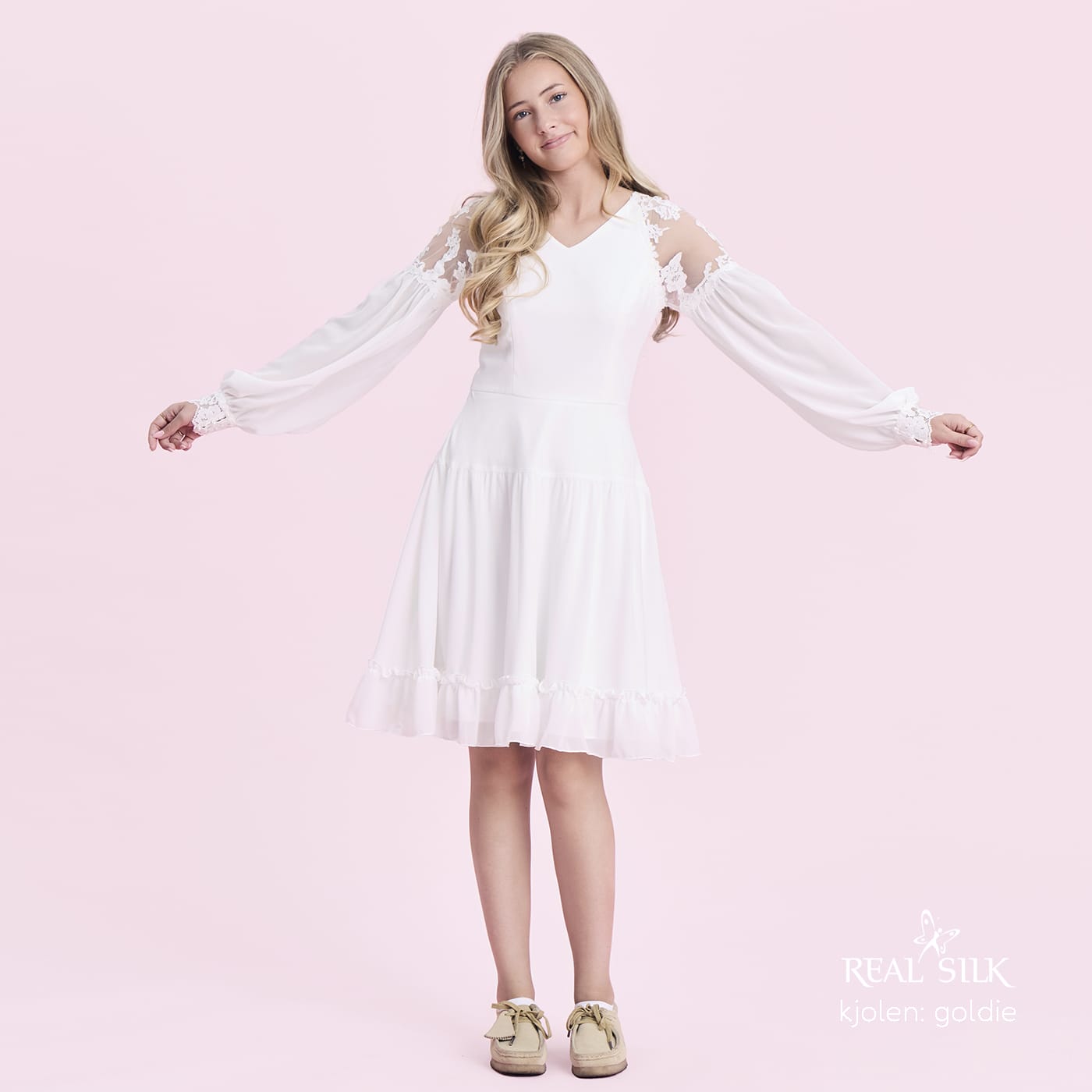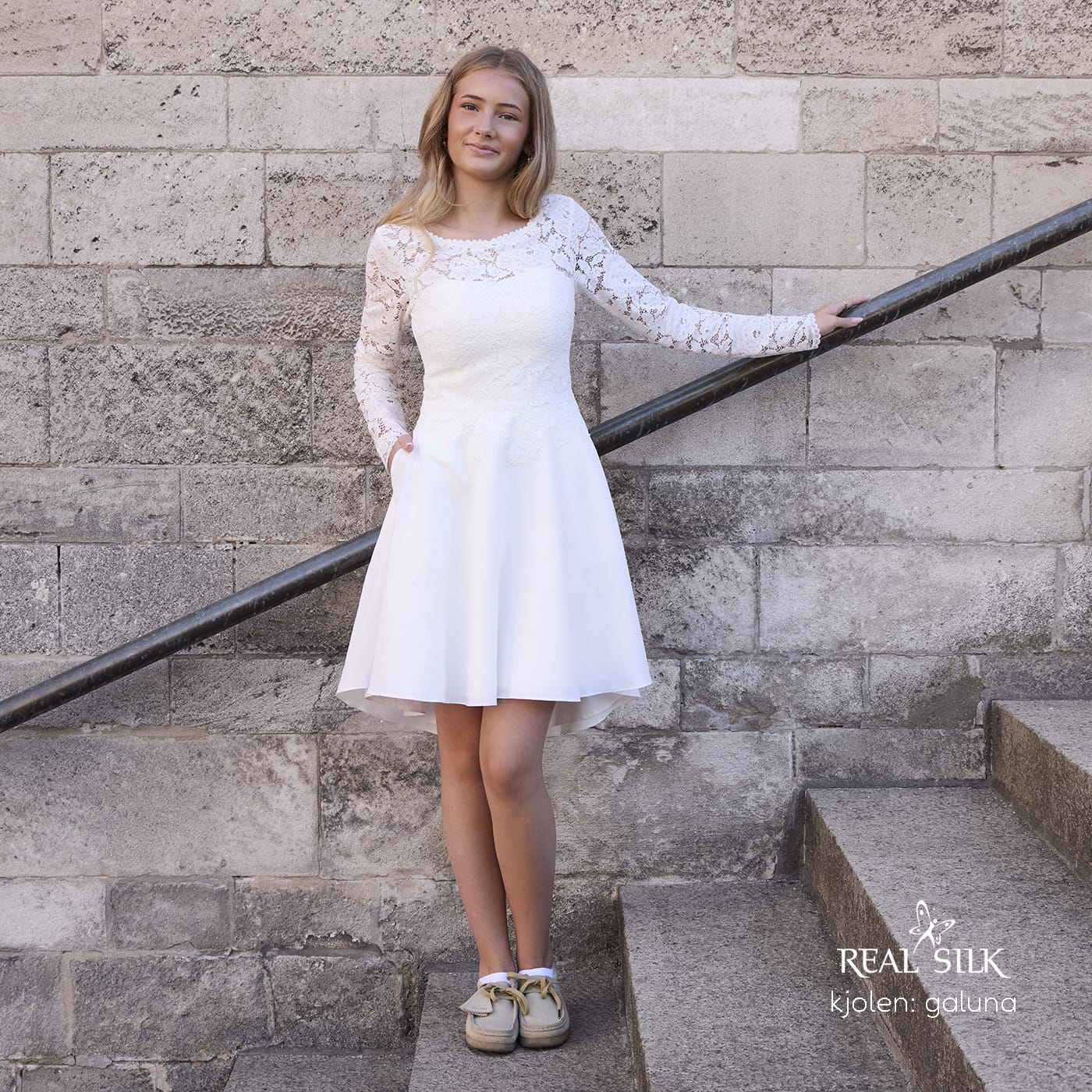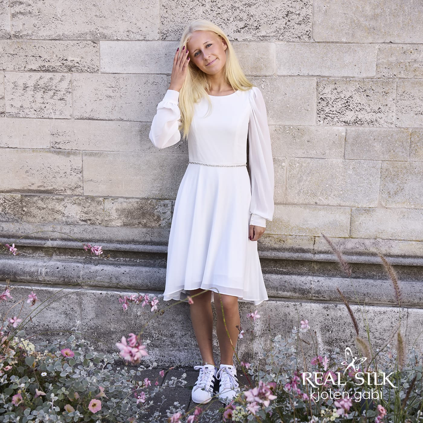 Vi tilbyder både konfirmationskjoler fra Real Silk, og skræddersyet konfirmationskjoler.