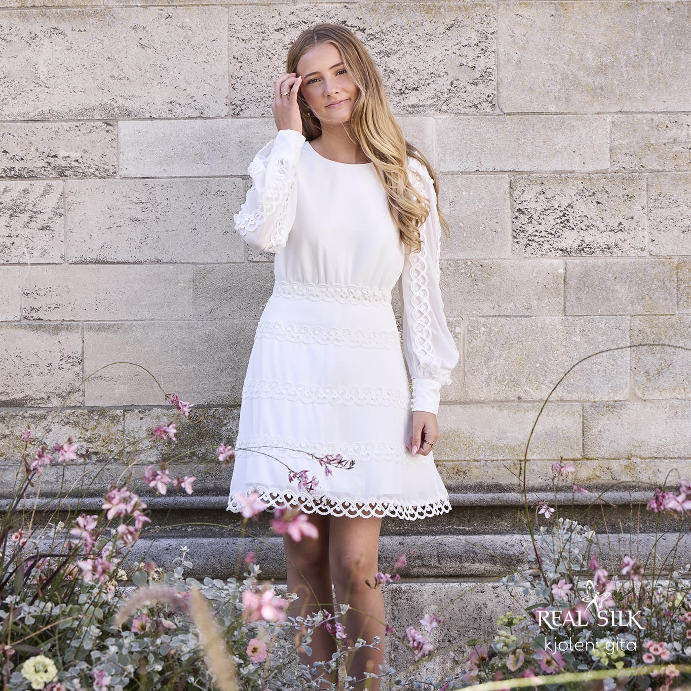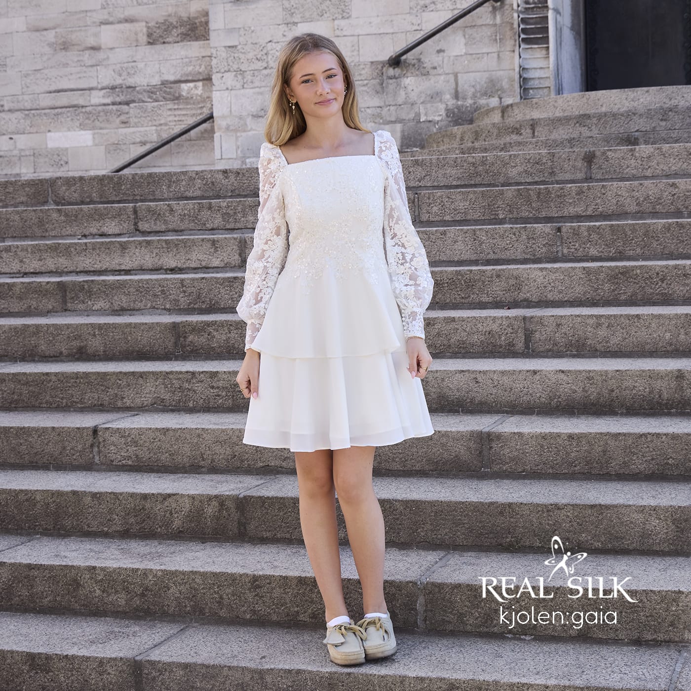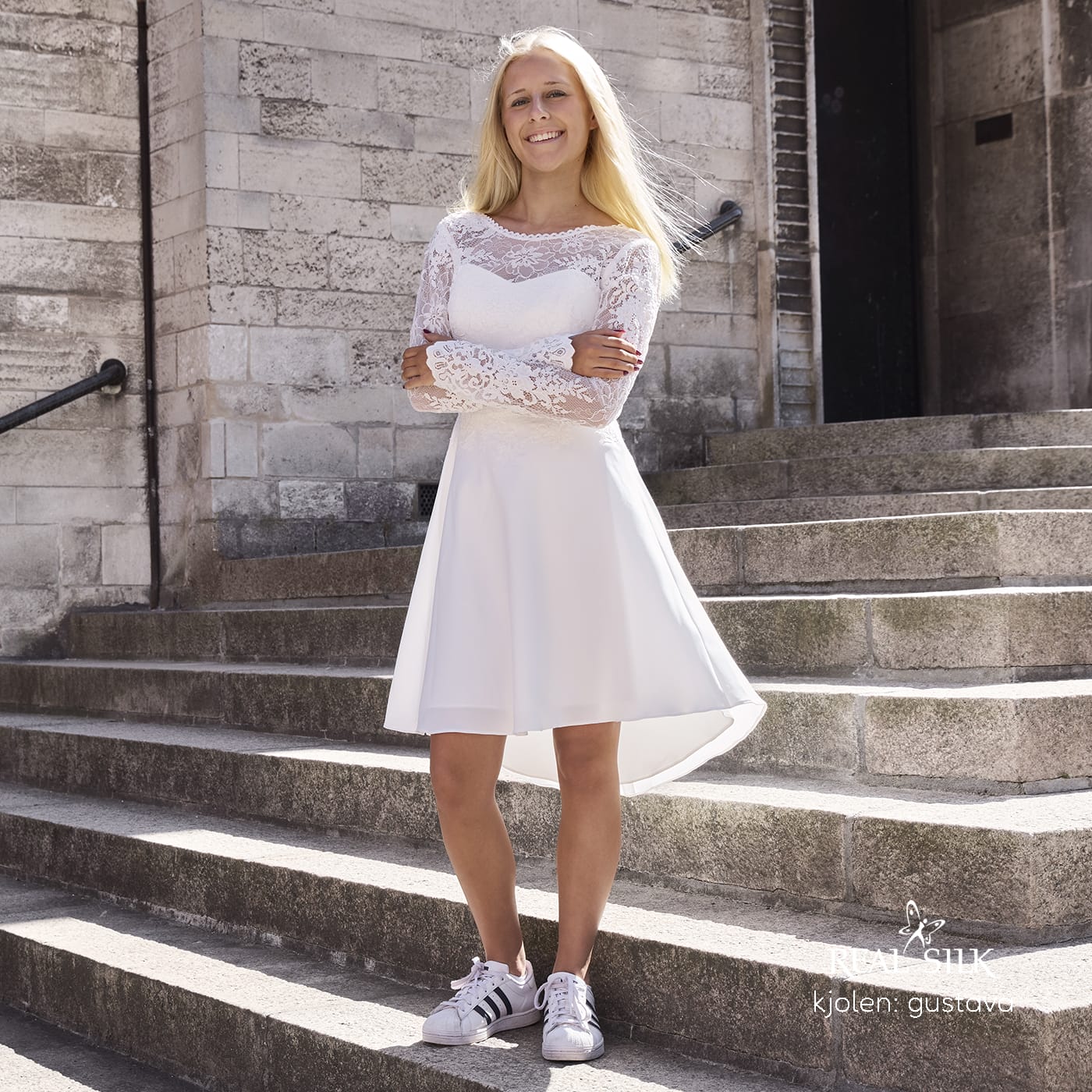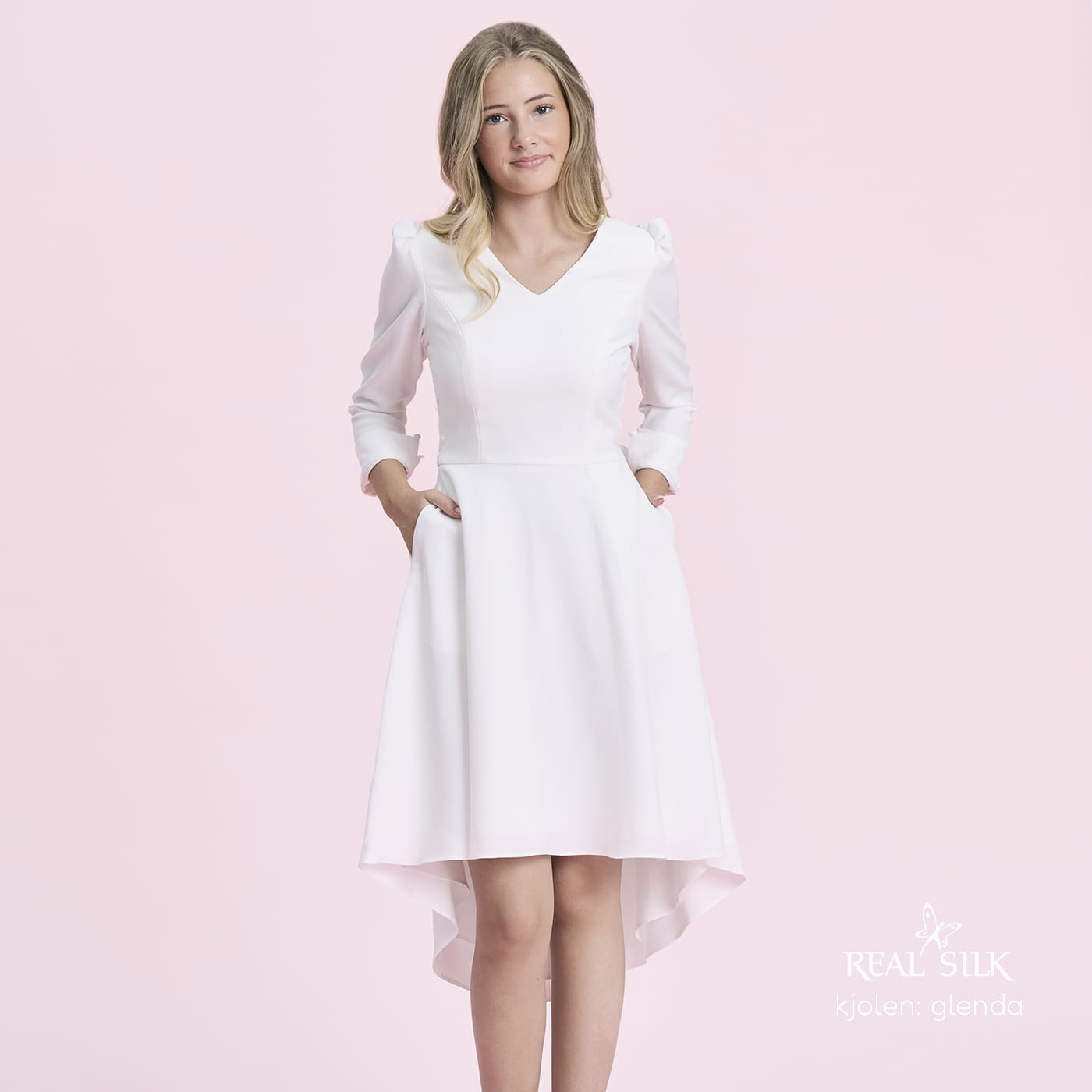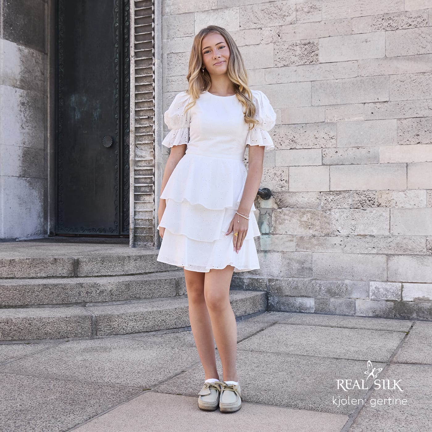 Vi tilbyder både konfirmationskjoler fra Real Silk, og skræddersyet konfirmationskjoler.