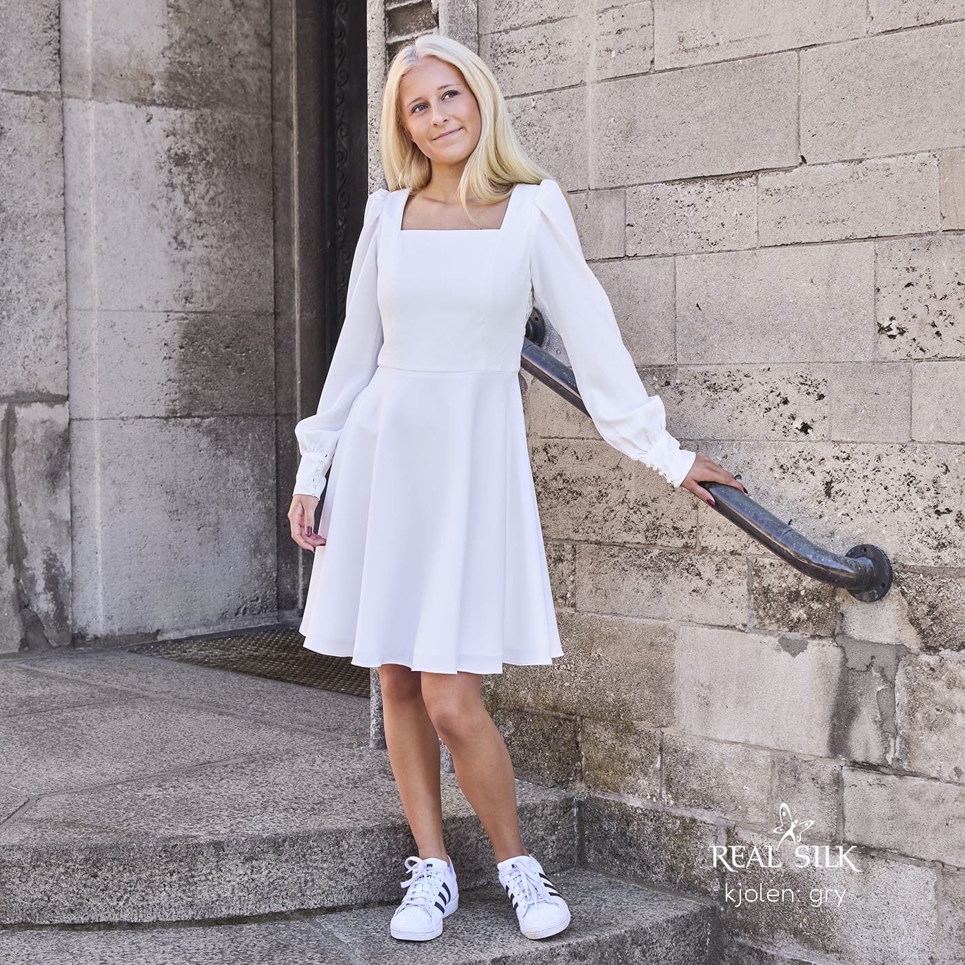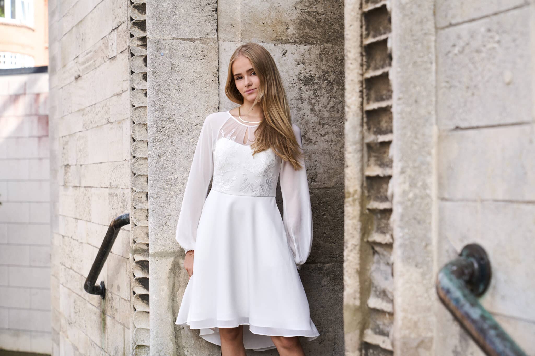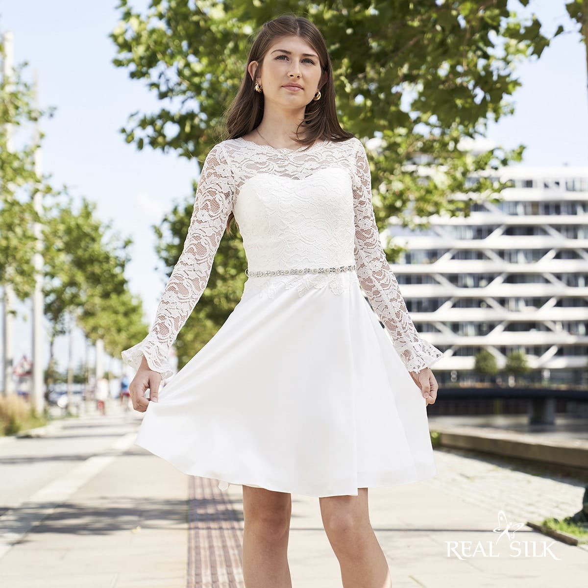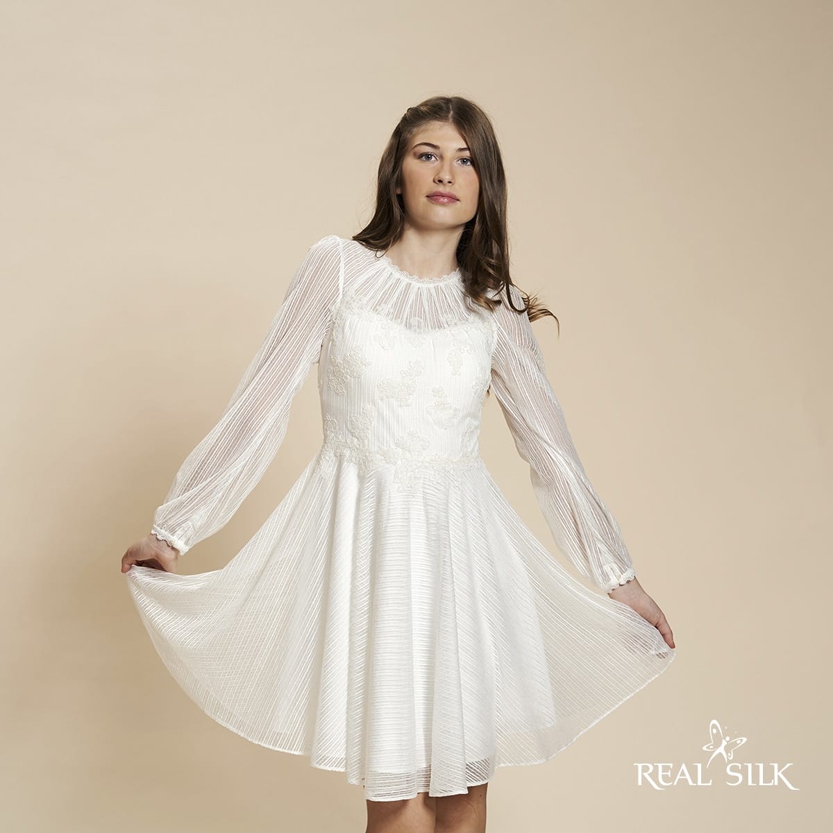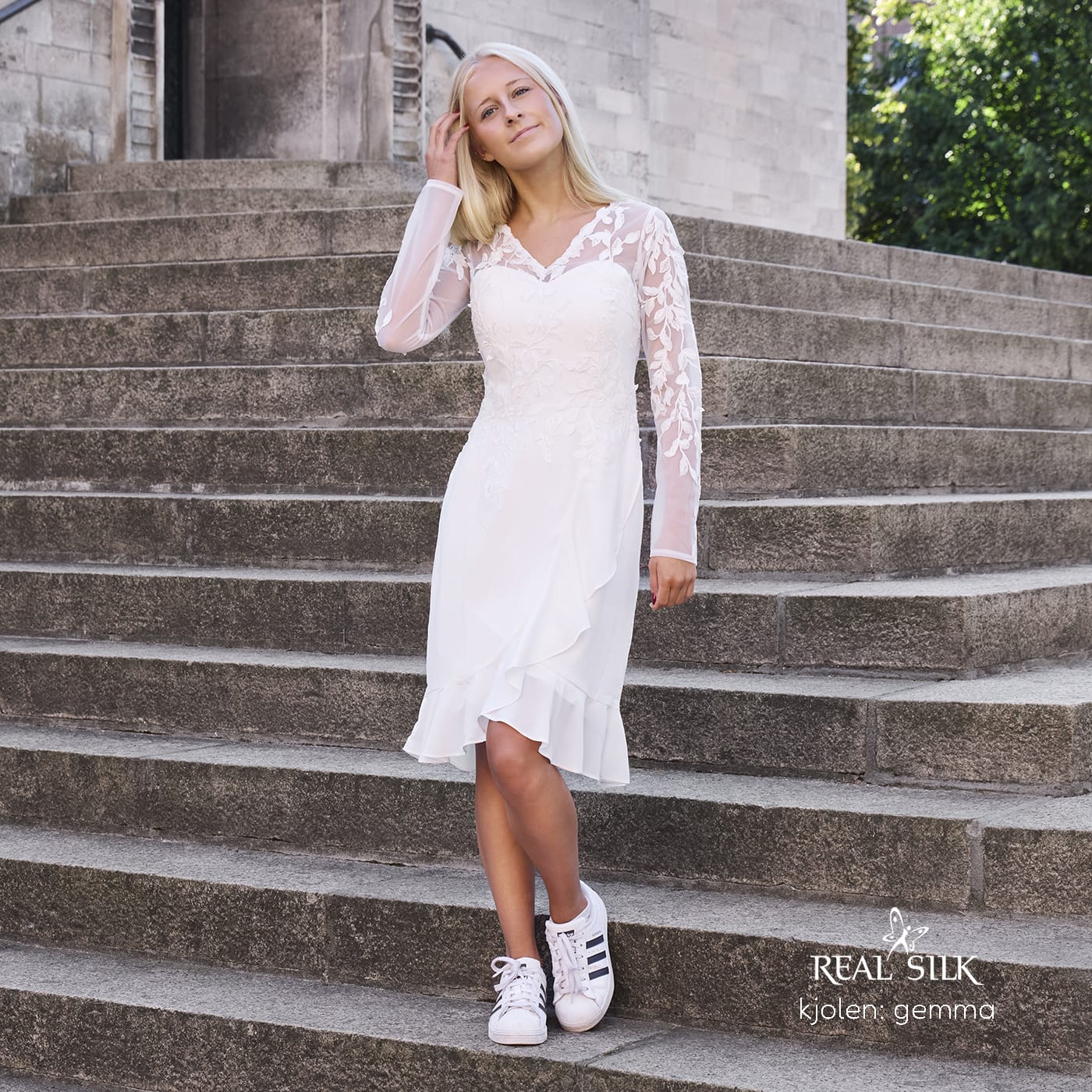 Vi tilbyder både konfirmationskjoler fra Real Silk, og skræddersyet konfirmationskjoler.