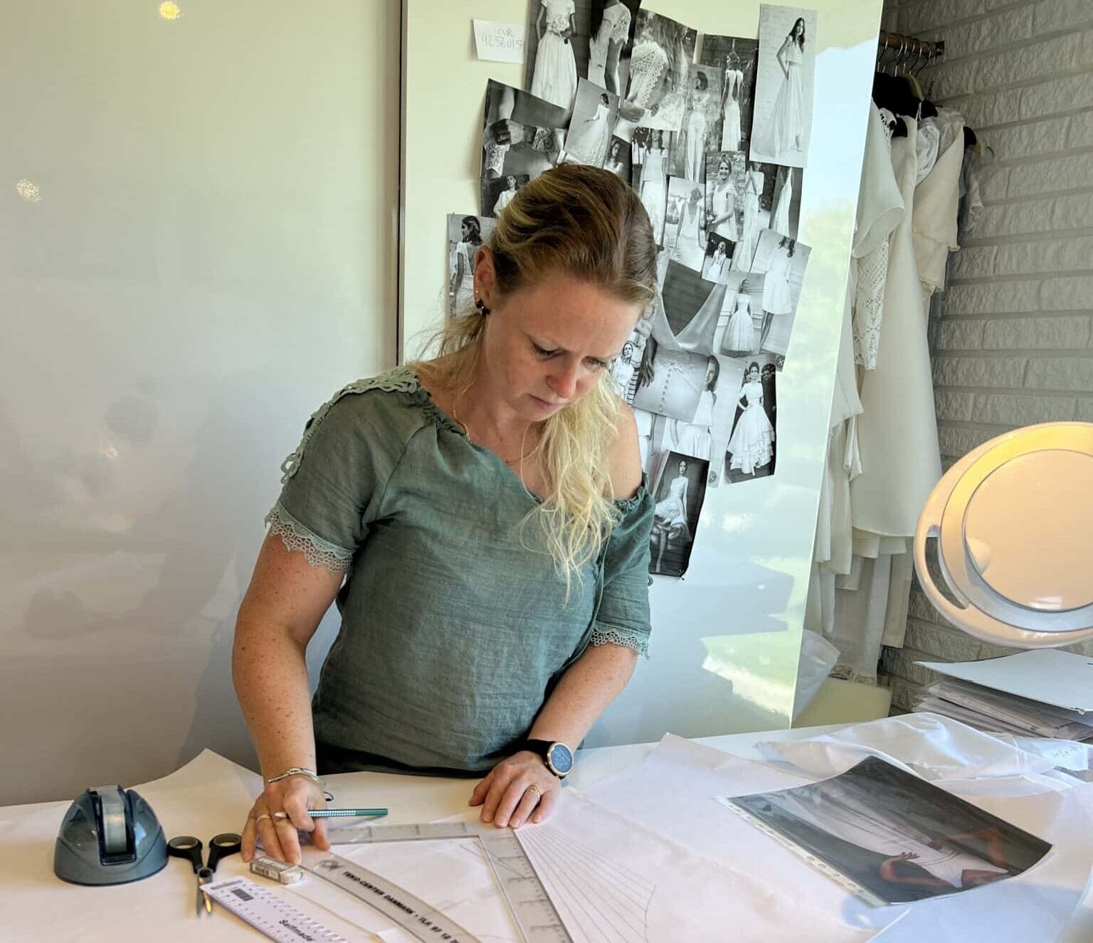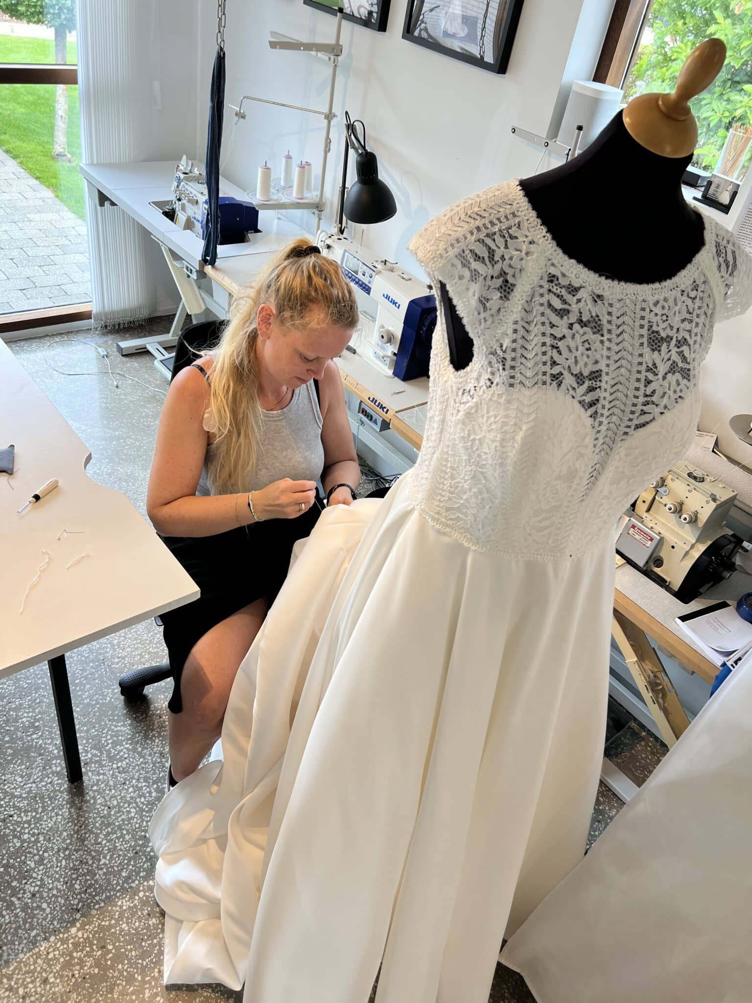 på EUC syd i sønderborg og har 13 års erfaring med syning og tilretning af brudekjoler. Lone er en meget dygtig håndværker og tager sig ofte af håndsyning som også er en stor passion for hende.